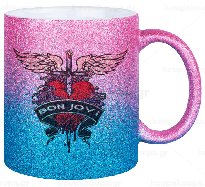 Bon Jovi, Κούπα Χρυσή/Μπλε Glitter, κεραμική, 330ml