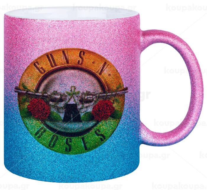 Guns N' Roses, Κούπα Χρυσή/Μπλε Glitter, κεραμική, 330ml