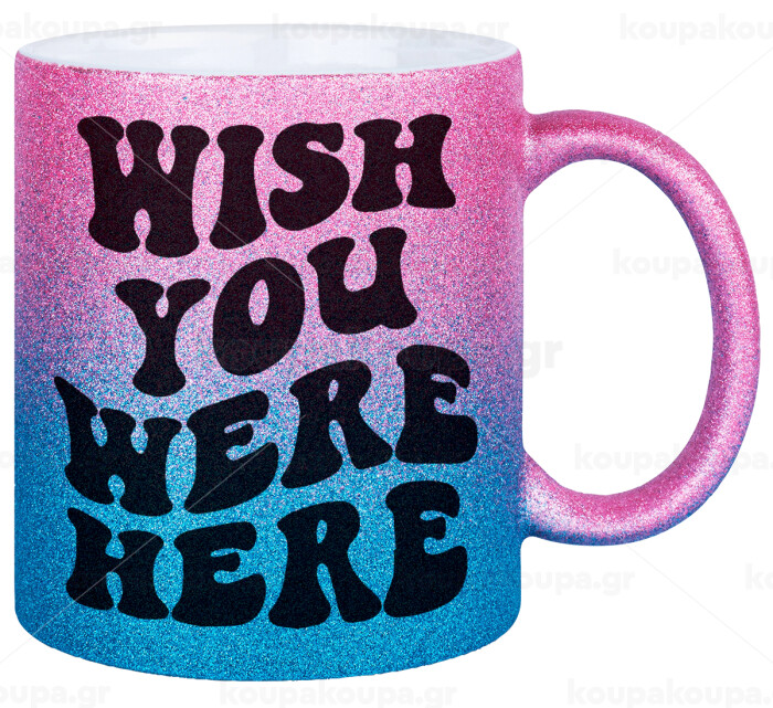 Wish you were here, Κούπα Χρυσή/Μπλε Glitter, κεραμική, 330ml