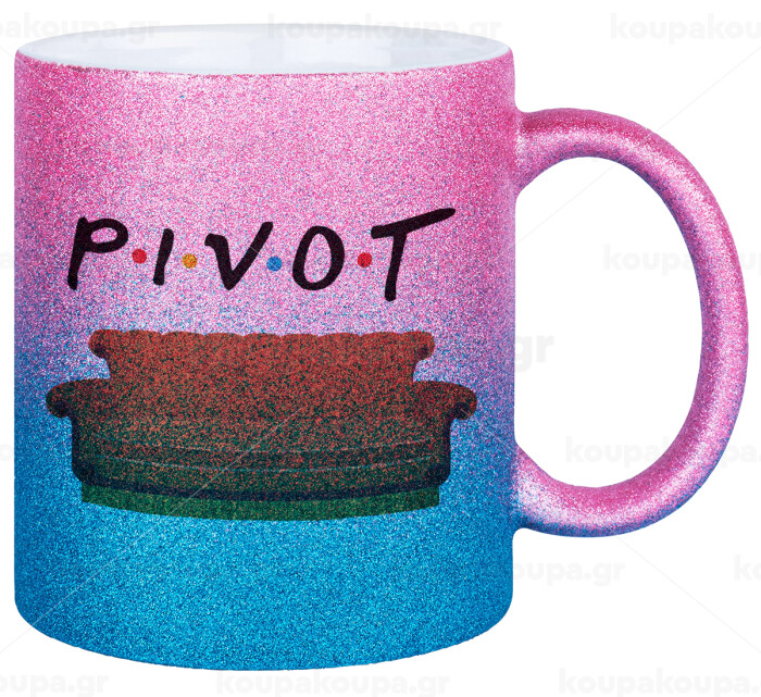 Friends Pivot, Κούπα Χρυσή/Μπλε Glitter, κεραμική, 330ml