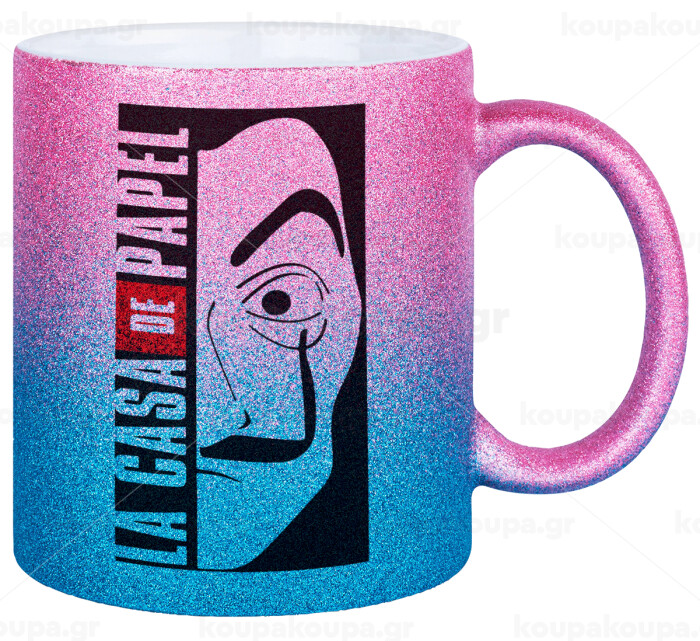 La casa de papel vertical, Κούπα Χρυσή/Μπλε Glitter, κεραμική, 330ml