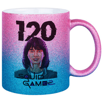 Squid game 120 Cho Hyun-ju, Κούπα Χρυσή/Μπλε Glitter, κεραμική, 330ml