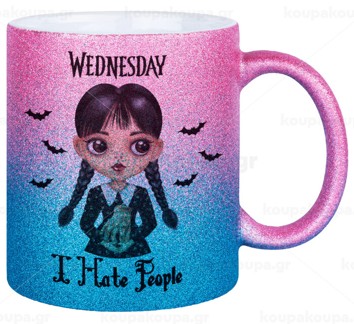 Wednesday Adams, i hate people, Κούπα Χρυσή/Μπλε Glitter, κεραμική, 330ml