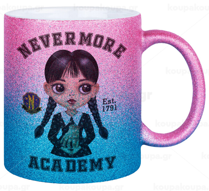 Wednesday Adams, nevermore, Κούπα Χρυσή/Μπλε Glitter, κεραμική, 330ml