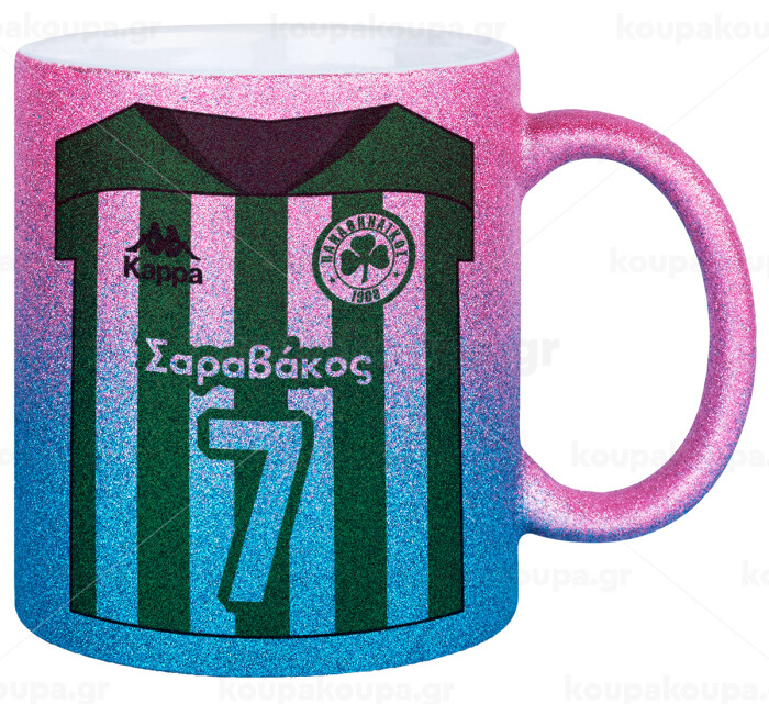 Παναθηναϊκός εμφάνιση, Κούπα Χρυσή/Μπλε Glitter, κεραμική, 330ml