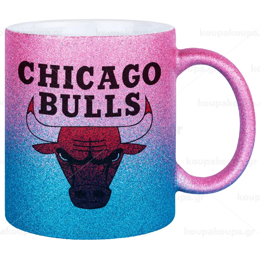 Chicago Bulls, Κούπα Χρυσή/Μπλε Glitter, κεραμική, 330ml