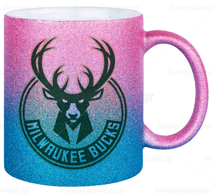 Milwaukee bucks, Κούπα Χρυσή/Μπλε Glitter, κεραμική, 330ml