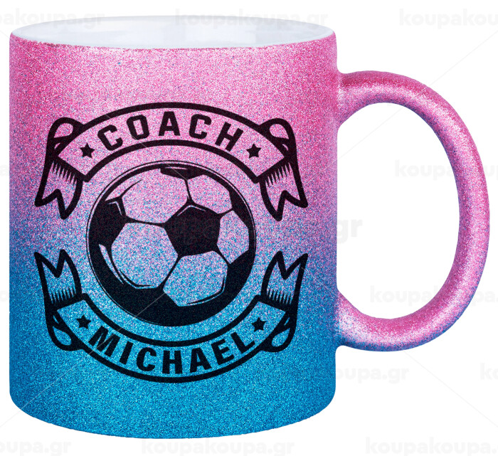 Soccer coach, Κούπα Χρυσή/Μπλε Glitter, κεραμική, 330ml