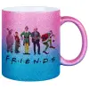 Christmas FRIENDS, Κούπα Χρυσή/Μπλε Glitter, κεραμική, 330ml
