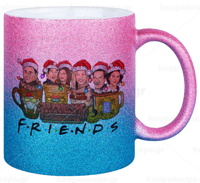 FRIENDS xmas, Κούπα Χρυσή/Μπλε Glitter, κεραμική, 330ml