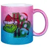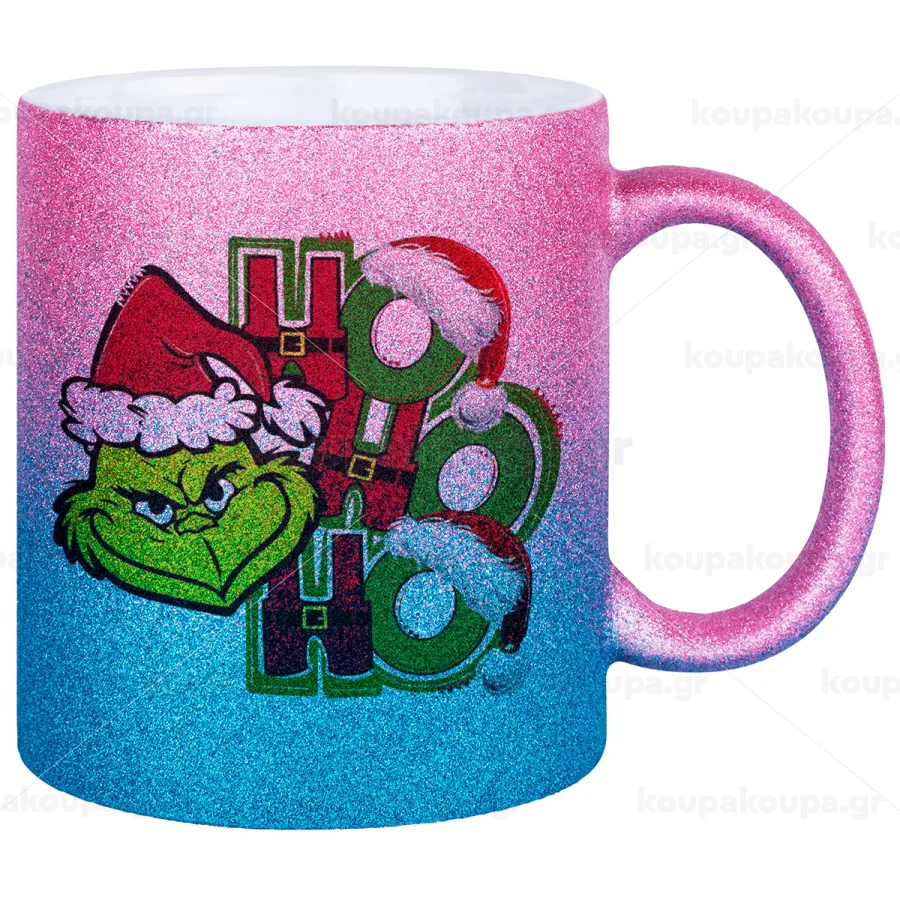 Grinch ho ho ho, Κούπα Χρυσή/Μπλε Glitter, κεραμική, 330ml