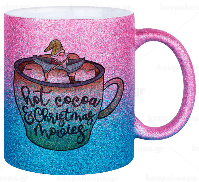 Hot Cocoa And Christmas Movies, Κούπα Χρυσή/Μπλε Glitter, κεραμική, 330ml
