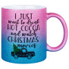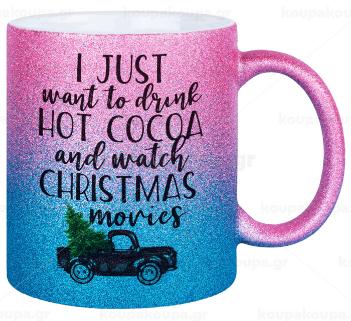 I just want to drink hot cocoa and watch christmas movies pickup car, Κούπα Χρυσή/Μπλε Glitter, κεραμική, 330ml