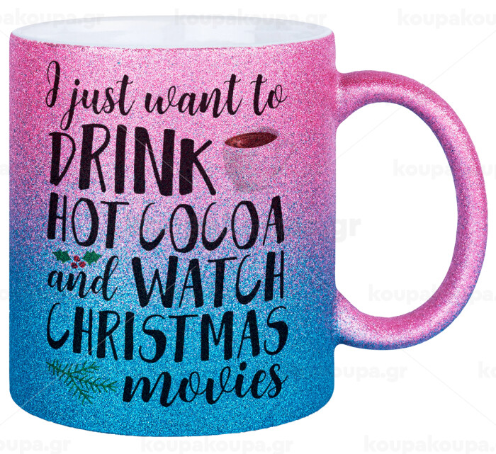 I just want to drink hot cocoa and watch christmas movies, Κούπα Χρυσή/Μπλε Glitter, κεραμική, 330ml