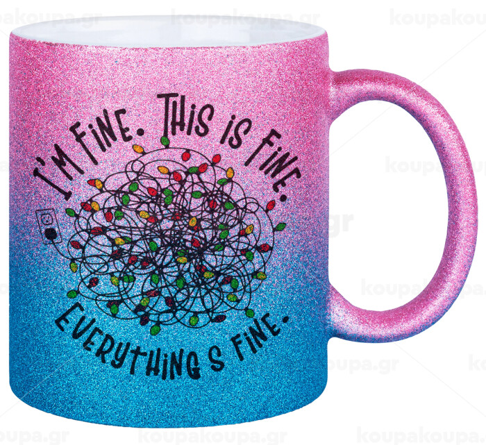It's Fine I'm Fine Everything Is Fine, Κούπα Χρυσή/Μπλε Glitter, κεραμική, 330ml
