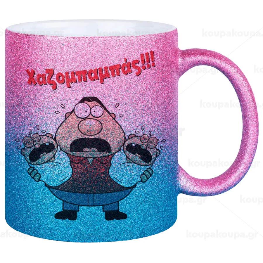Χαζομπαμπάς σε απόγνωση, Κούπα Χρυσή/Μπλε Glitter, κεραμική, 330ml