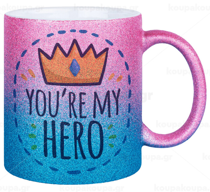 Dad, you are my hero!, Κούπα Χρυσή/Μπλε Glitter, κεραμική, 330ml