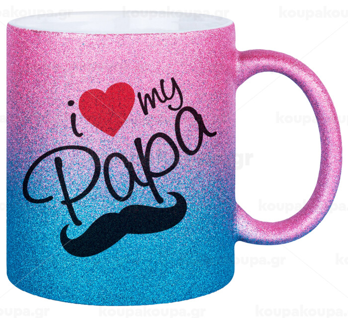 I Love my papa, Κούπα Χρυσή/Μπλε Glitter, κεραμική, 330ml