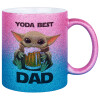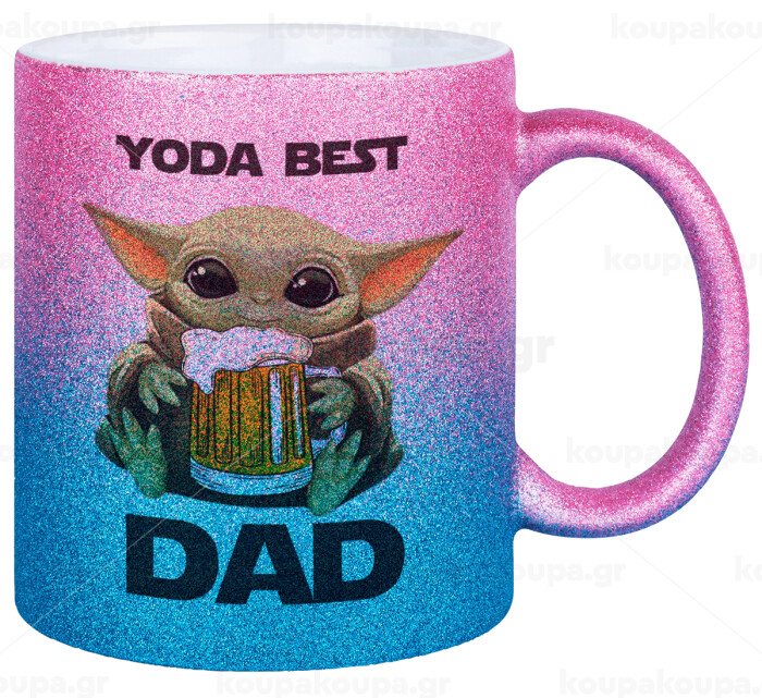 Yoda Best Dad, Κούπα Χρυσή/Μπλε Glitter, κεραμική, 330ml