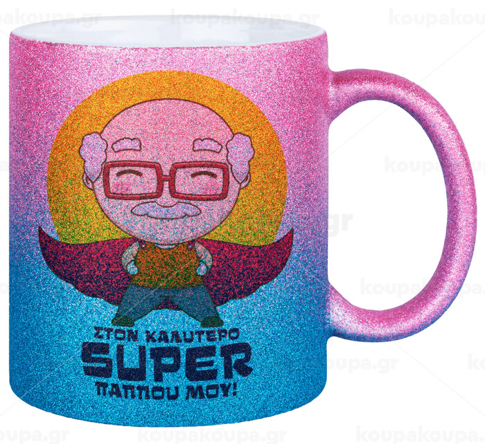 Στον καλύτερο Super παππού μου!, Κούπα Χρυσή/Μπλε Glitter, κεραμική, 330ml