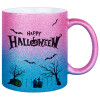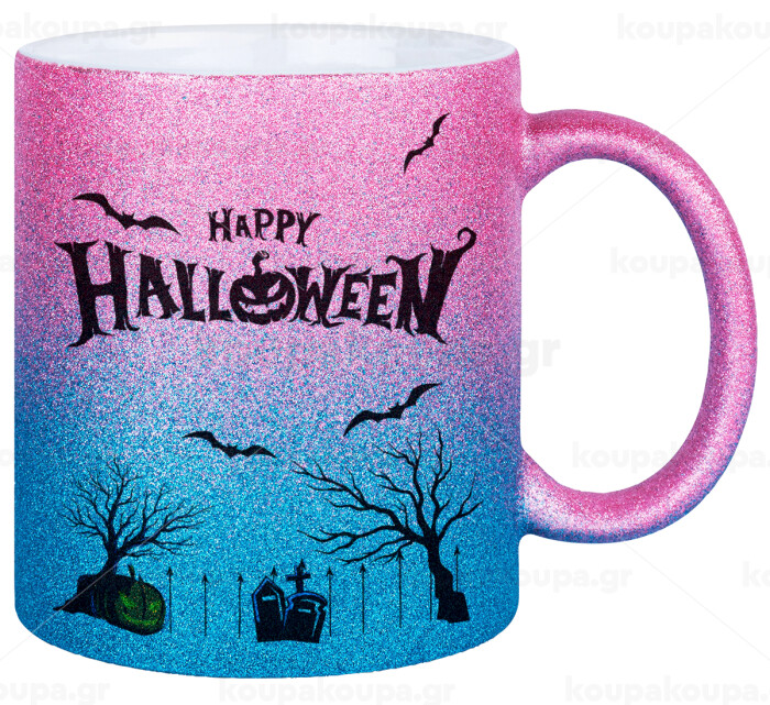 Happy Halloween cemetery, Κούπα Χρυσή/Μπλε Glitter, κεραμική, 330ml