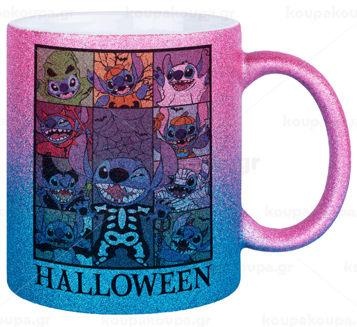 Stitch Halloween, Κούπα Χρυσή/Μπλε Glitter, κεραμική, 330ml