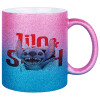 Stitch movie, Κούπα Χρυσή/Μπλε Glitter, κεραμική, 330ml
