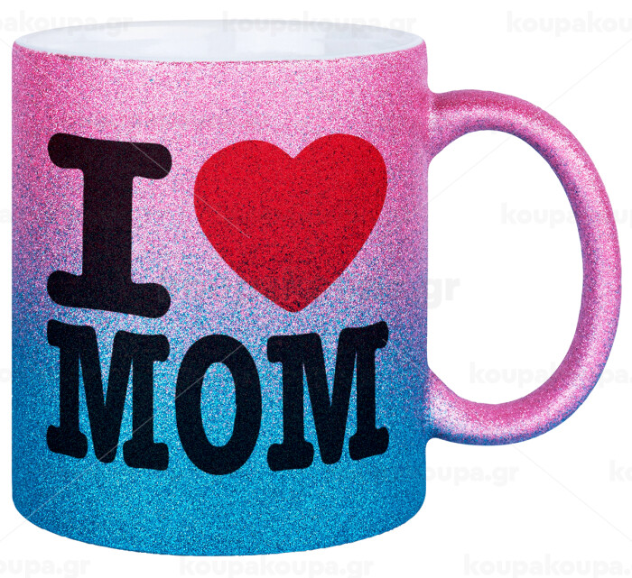 I LOVE MOM, Κούπα Χρυσή/Μπλε Glitter, κεραμική, 330ml