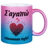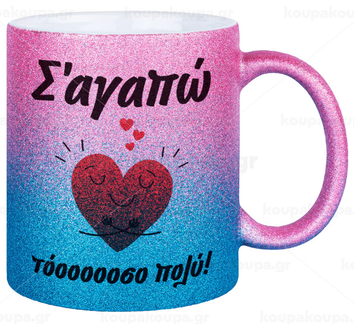 Σ΄αγαπώ τόοοοσο πολύ καρδιά, Κούπα Χρυσή/Μπλε Glitter, κεραμική, 330ml