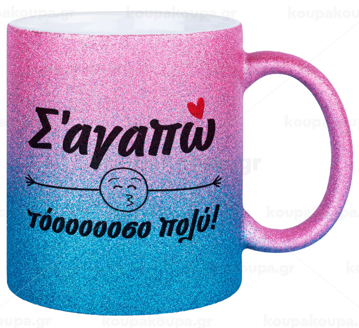 Σ΄ αγαπώ τόοοοοοσο πολύ!!!, Κούπα Χρυσή/Μπλε Glitter, κεραμική, 330ml