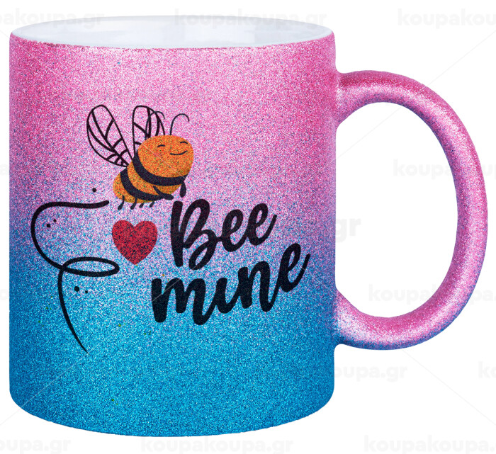 Bee mine!!!, Κούπα Χρυσή/Μπλε Glitter, κεραμική, 330ml