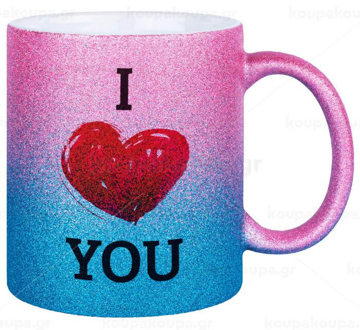 I Love You, Κούπα Χρυσή/Μπλε Glitter, κεραμική, 330ml