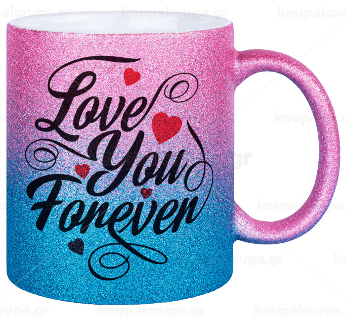 Love you forever, Κούπα Χρυσή/Μπλε Glitter, κεραμική, 330ml