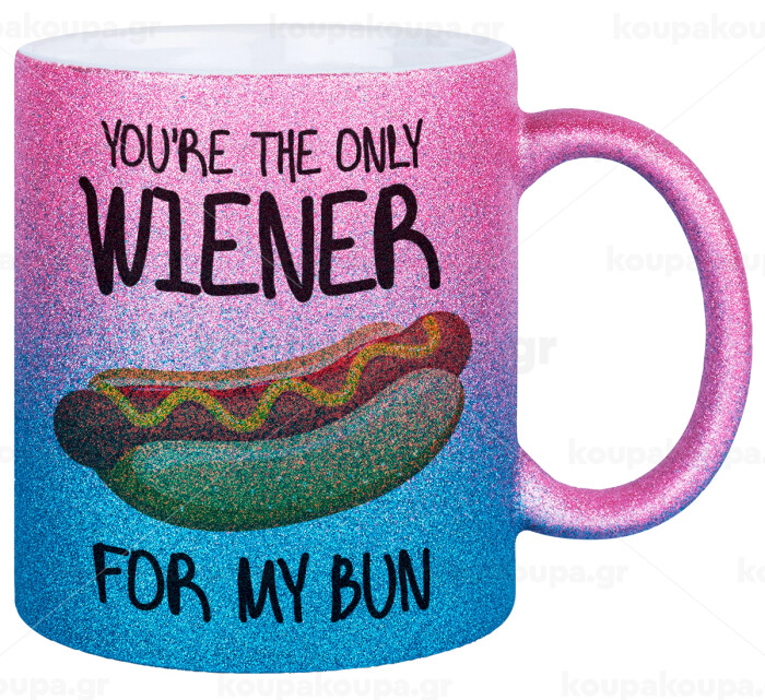 You re the only wiener for my bun, Κούπα Χρυσή/Μπλε Glitter, κεραμική, 330ml