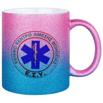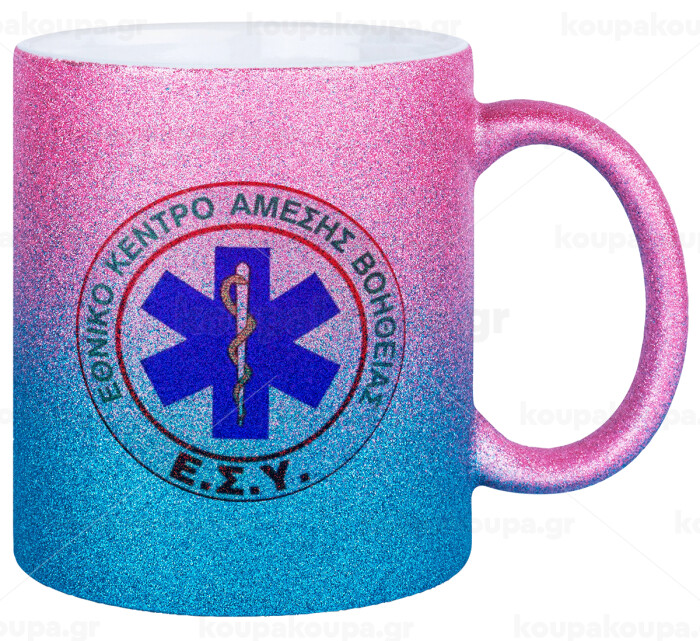 ΕΚΑΒ, Κούπα Χρυσή/Μπλε Glitter, κεραμική, 330ml