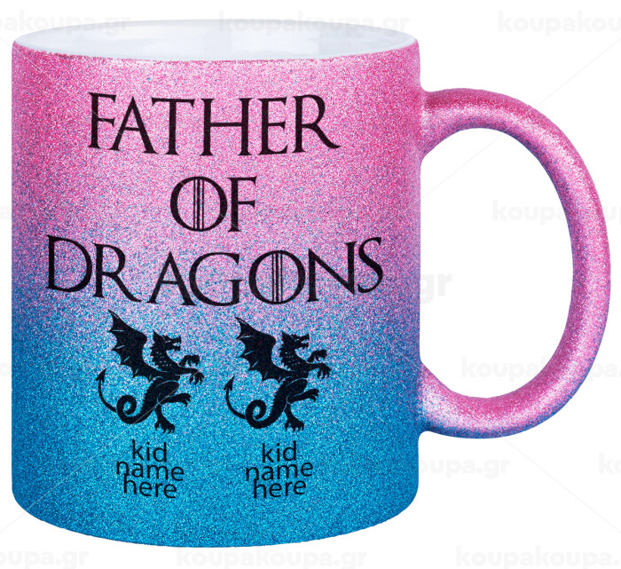 GOT, Father of Dragons (με ονόματα παιδικά), Κούπα Χρυσή/Μπλε Glitter, κεραμική, 330ml