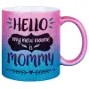 Hello, my new name is Mommy, Κούπα Χρυσή/Μπλε Glitter, κεραμική, 330ml