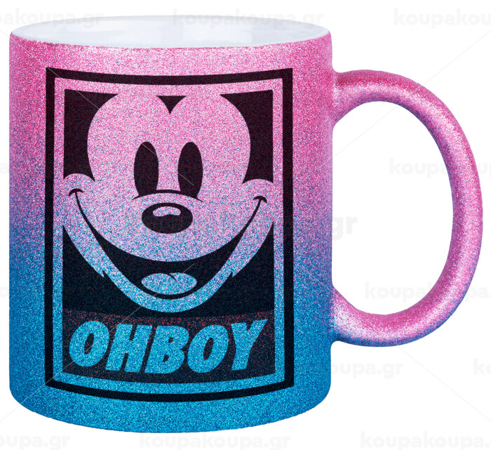 Oh boy μίκυ, Κούπα Χρυσή/Μπλε Glitter, κεραμική, 330ml