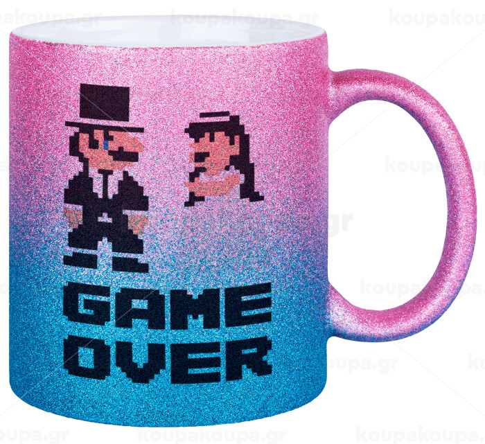 8bit Game Over Couple Wedding, Κούπα Χρυσή/Μπλε Glitter, κεραμική, 330ml
