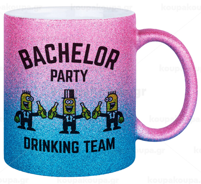 Bachelor Party Drinking Team, Κούπα Χρυσή/Μπλε Glitter, κεραμική, 330ml