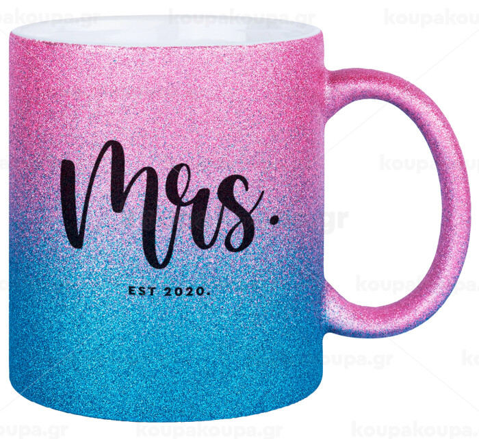 Mr & Mrs (Mrs), Κούπα Χρυσή/Μπλε Glitter, κεραμική, 330ml