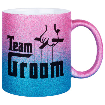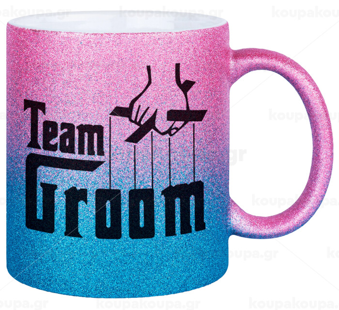 Team Groom, Κούπα Χρυσή/Μπλε Glitter, κεραμική, 330ml