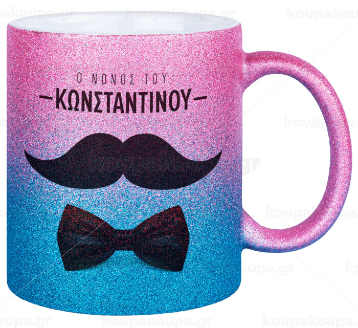 Ο νονός μου, μουστάκι με παπιγιόν, Κούπα Χρυσή/Μπλε Glitter, κεραμική, 330ml