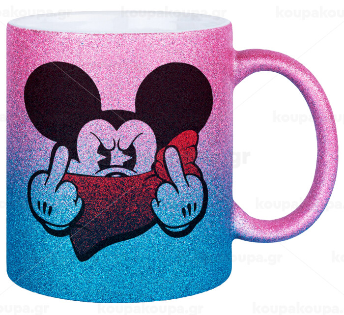 Mickey fuck off, Κούπα Χρυσή/Μπλε Glitter, κεραμική, 330ml