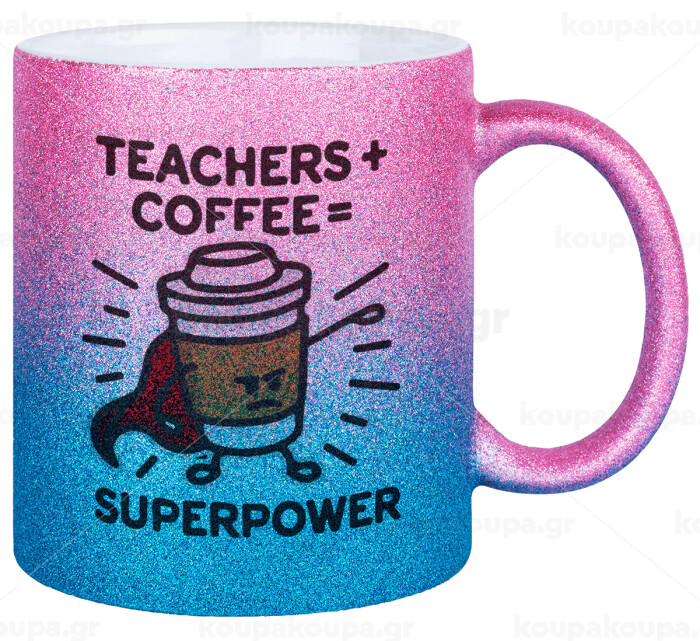 Teacher Coffee Super Power, Κούπα Χρυσή/Μπλε Glitter, κεραμική, 330ml
