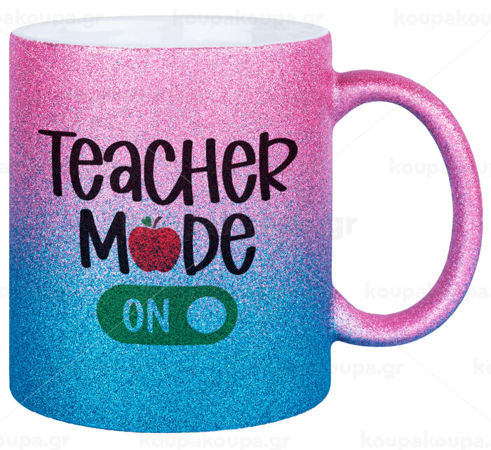 Teacher mode ON, Κούπα Χρυσή/Μπλε Glitter, κεραμική, 330ml