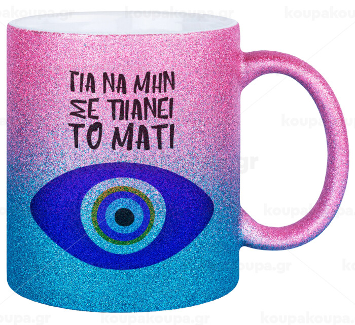 Για να μην σε πιάνει το μάτι, Κούπα Χρυσή/Μπλε Glitter, κεραμική, 330ml