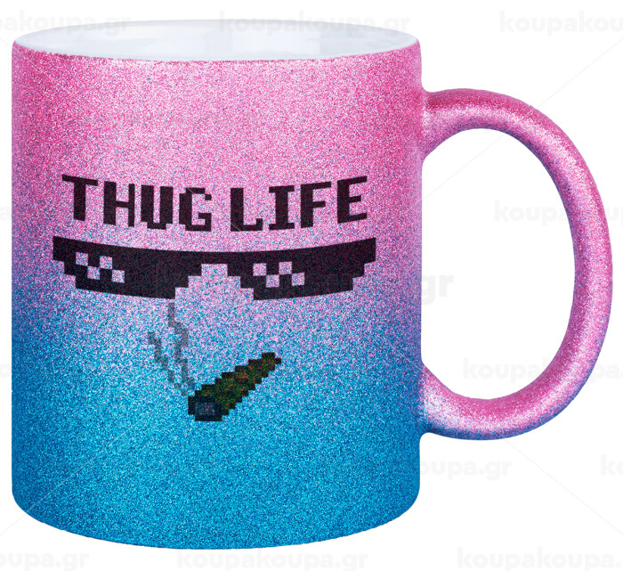 thug life, Κούπα Χρυσή/Μπλε Glitter, κεραμική, 330ml