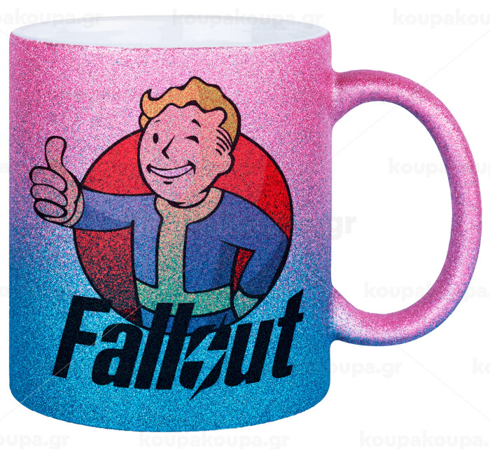 Fallout Vault Boy, Κούπα Χρυσή/Μπλε Glitter, κεραμική, 330ml