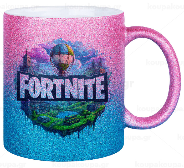 Fortnite land, Κούπα Χρυσή/Μπλε Glitter, κεραμική, 330ml